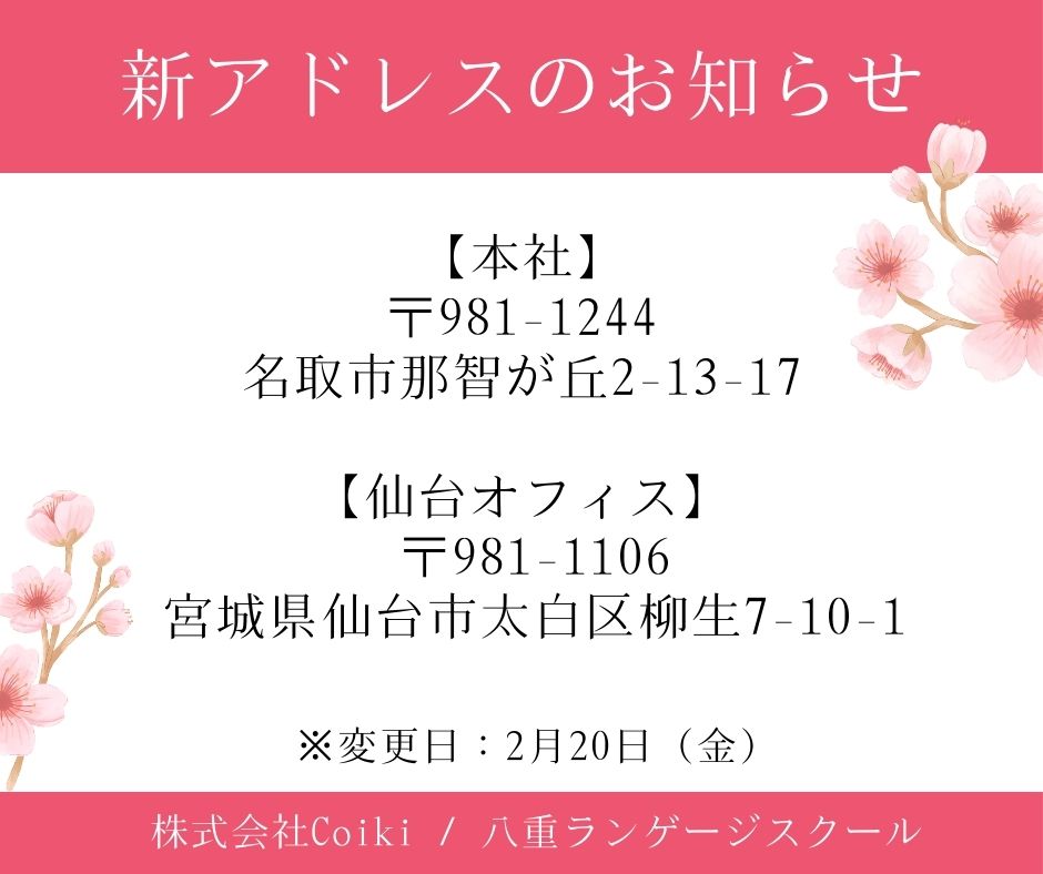 このたび株式会社Coikiは、業務拡充に伴い、下記の通りオフィス住所を変更いたしました。