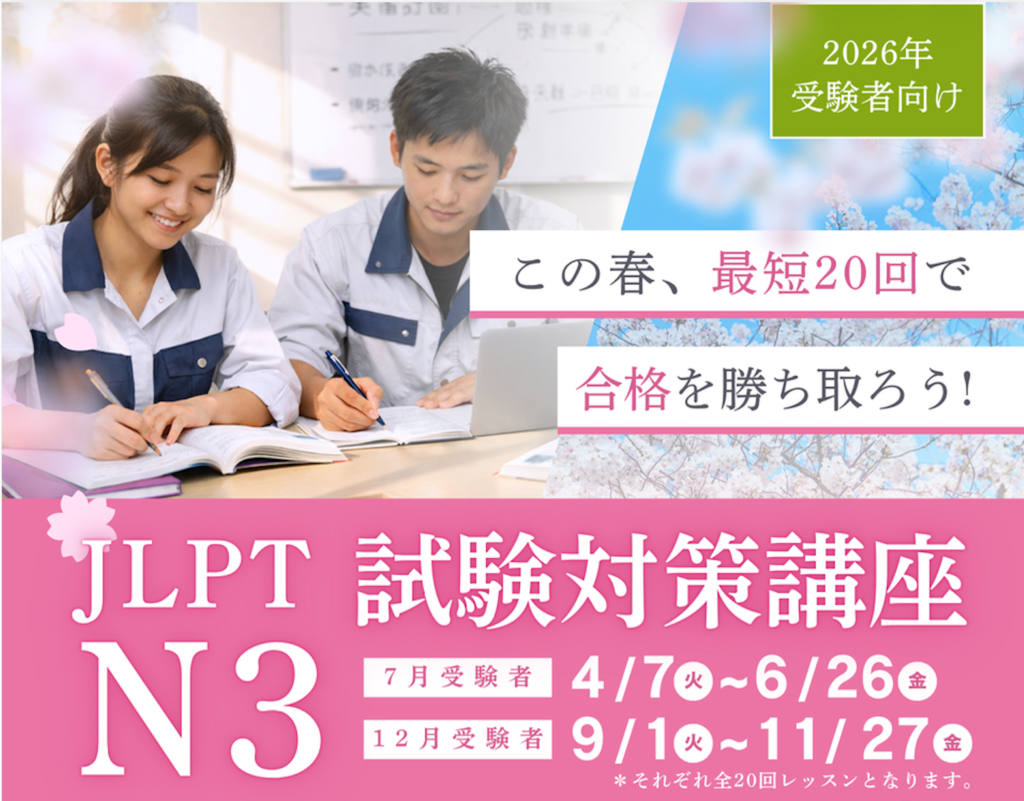 2026年の 日本語能力試験(JLPT)受験者を対象とした「N3試験対策講座」を開講いたします。